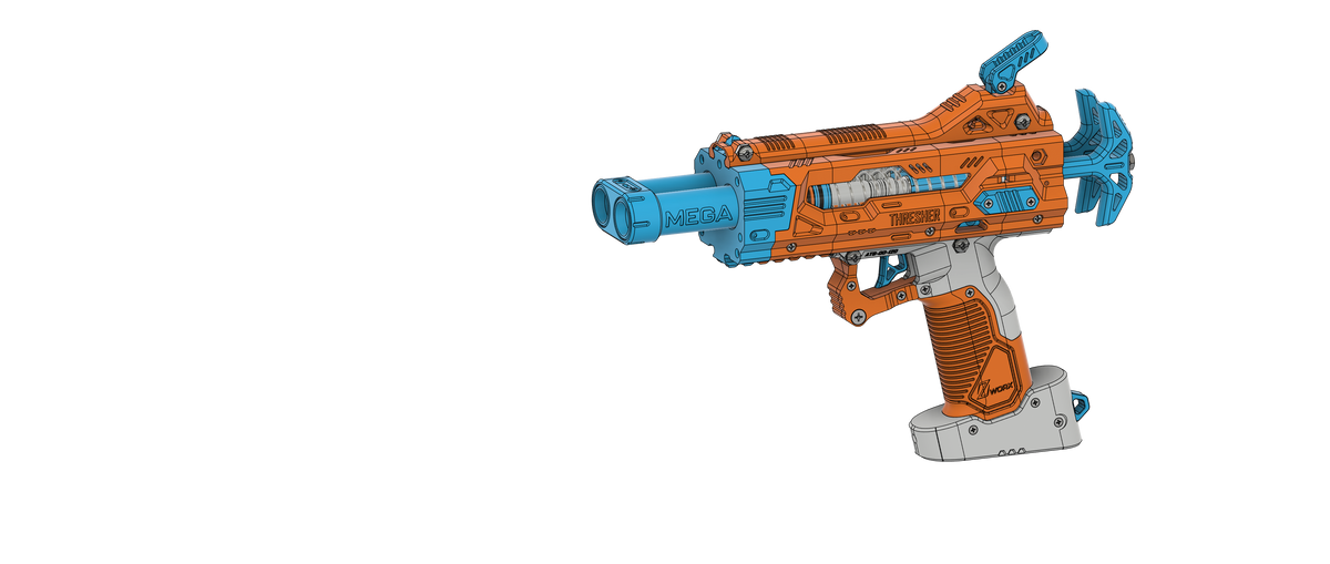 The Thresher X2P is a dual-barrel expansion that pairs two 1.0" ID plunger tube systems in a compact configuration. The TRX2P system doubles shot capacity while keeping hardware requirements low. Supports Mega and Rival dart formats via dedicated front-end barrel adapters.