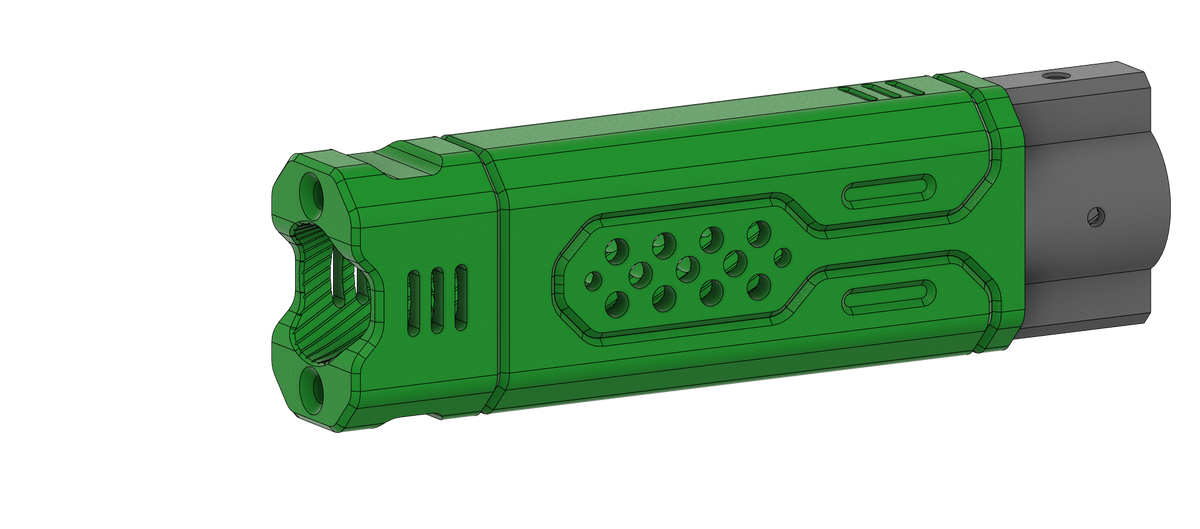 Style the nose of your build without changing its heart. The Zeroworx Barrel Shroud Kit is a standalone set of modular front-end pieces that lets you test looks and ammo formats easily. Born on the Hammerhead platform and now available on its own, the kit is made for builders who want visual impact and real function.