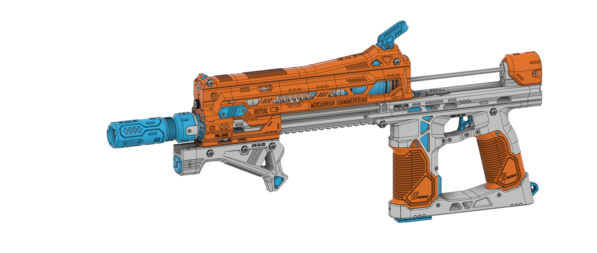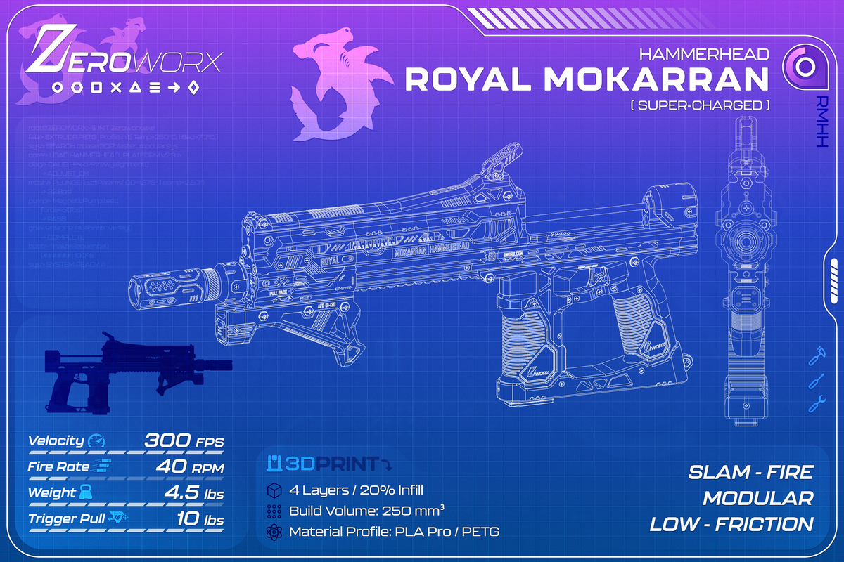 King Mokarran is an extended-draw, high-volume variant of the Hammerhead platform designed for maximum plunger travel and output. The 12" + 4" spacer stack creates a 16" frame, supporting a 5.5" draw length and significantly increased compression and travel compared to the standard configuration. Structural elements and mounting points are reinforced to accommodate higher loads and longer mechanical stroke.